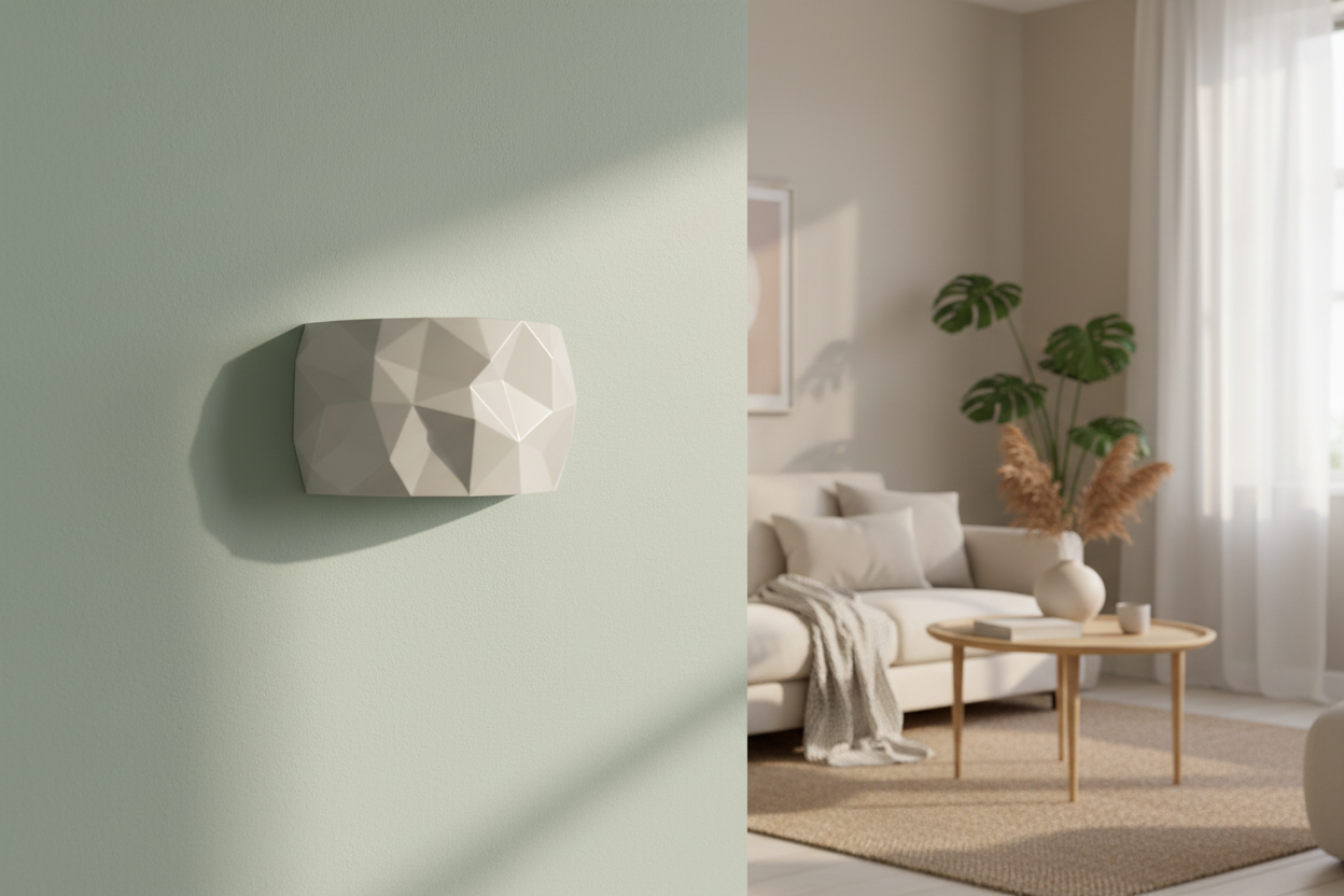 La superficie a geometria prismatica crea un effetto luminoso morbido e decorativo.