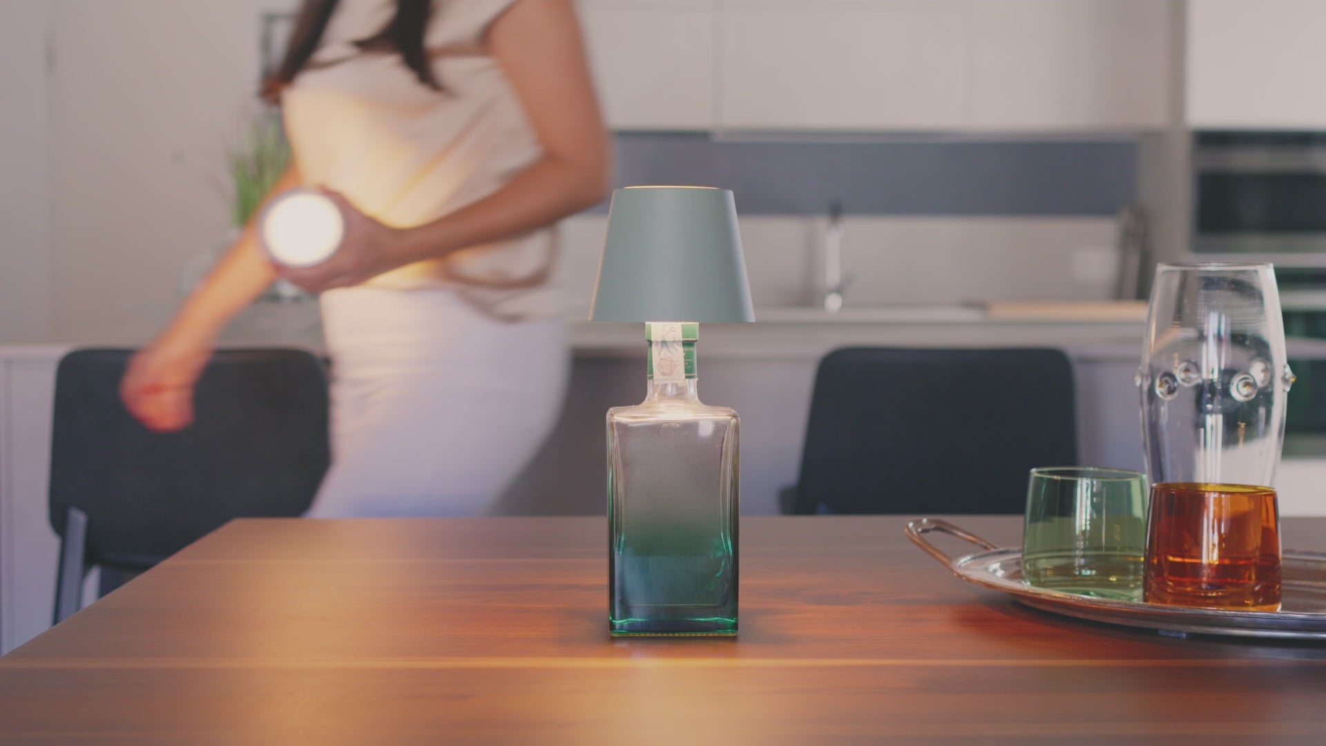 Poldina Stopper è una lampada portatile e ricaricabile che trasforma le tue bottiglie in fonti di luce. Con tappo in silicone e luce LED regolabile.