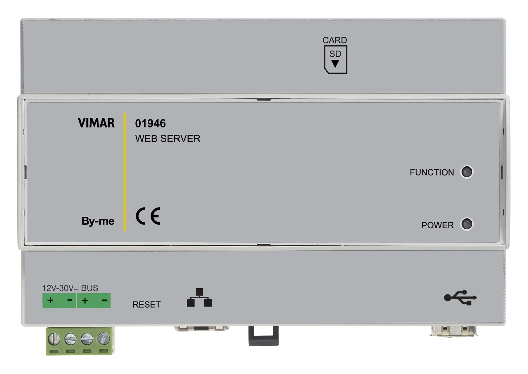 Web server Light per la supervisione locale e remota per domotica By-me via IP, gestione fino a 64 dispositivi, installazione su guida DIN (60715 TH35), occupa 8 moduli da 17,5 mm